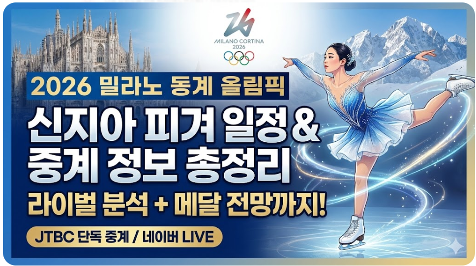 다시 한번 강조 드립니다. 이번 신지아 피겨 일정은 KBS, MBC, SBS에서 볼 수 없습니다. 2026 밀라노 동계 올림픽은 JTBC가 중계권을 독점했기 때문입니다.